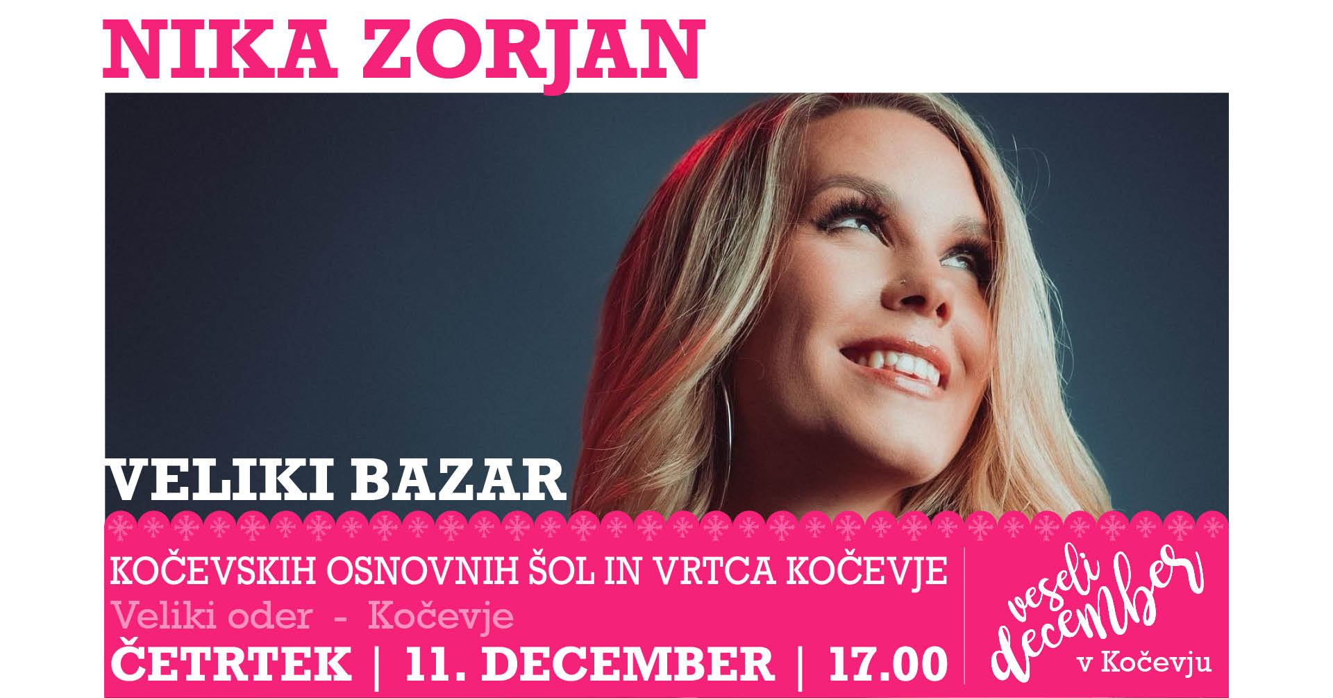 Za glasbeni vrhunec večera bo poskrbela priljubljena Nika Zorjan, ki bo s svojim koncertom prinesla nasmeh, energijo in praznični utrip.