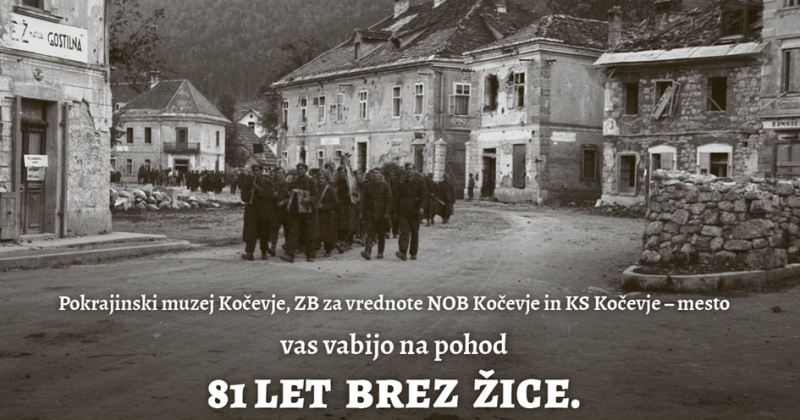 Pokrajinski muzej Kočevje, ZB za vrednote NOB Kočevje in KS Kočevje - mesto, vabijo na pohod 81 let brez žice.