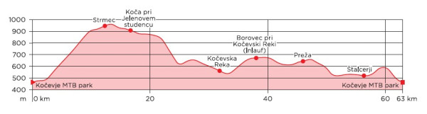 Route starts at the MTB trail center in the direction of Kočevje. At Podgorska ulica, we begin the climb towards the top of Stojna mountain. The trail leads us past gorges to the Strmec primeval forest and Eleonora Cave, and on to the hut at Jelenov Studenec. We continue along the forest road to Kočevska Reka and past Lake Kočevska Reka towards Inlauf, where we can leave our bikes and walk to the Krempe viewpoint and the edge of the Krokar primeval forest, which bears the UNESCO natural heritage symbol. Route continues past the ruins of the old Gottschee villages of Preže, Sadni hrib, and Mokri potok to Novi Lazi, and continues along the main road towards Kočevje. After a few kilometers, the route turns left onto a macadam road, which takes us back to the starting point. The route is quite demanding and requires good physical fitness. It is suitable for e-bikers or cyclists with very good physical fitness.